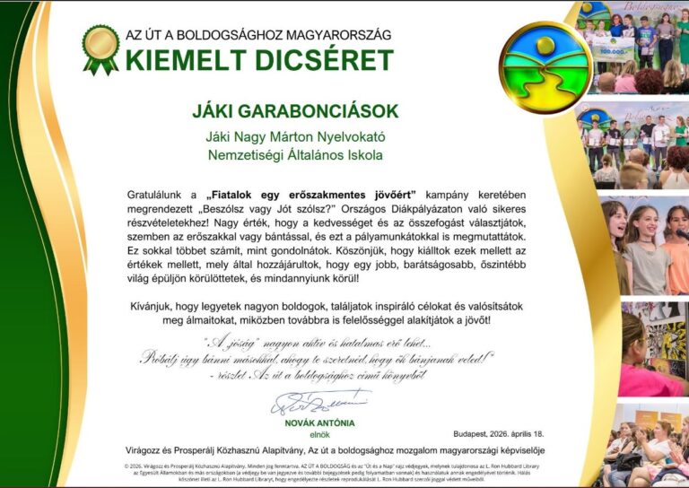 A 4.a osztály tanulói valamint Boda Sára és Vad Jázmin ezüst minősítést szereztek Vasváron a Weöres Sándor Gyermekszínjátszó Fesztiválon. A csapat rendkívül magabiztosan lépett színpadra