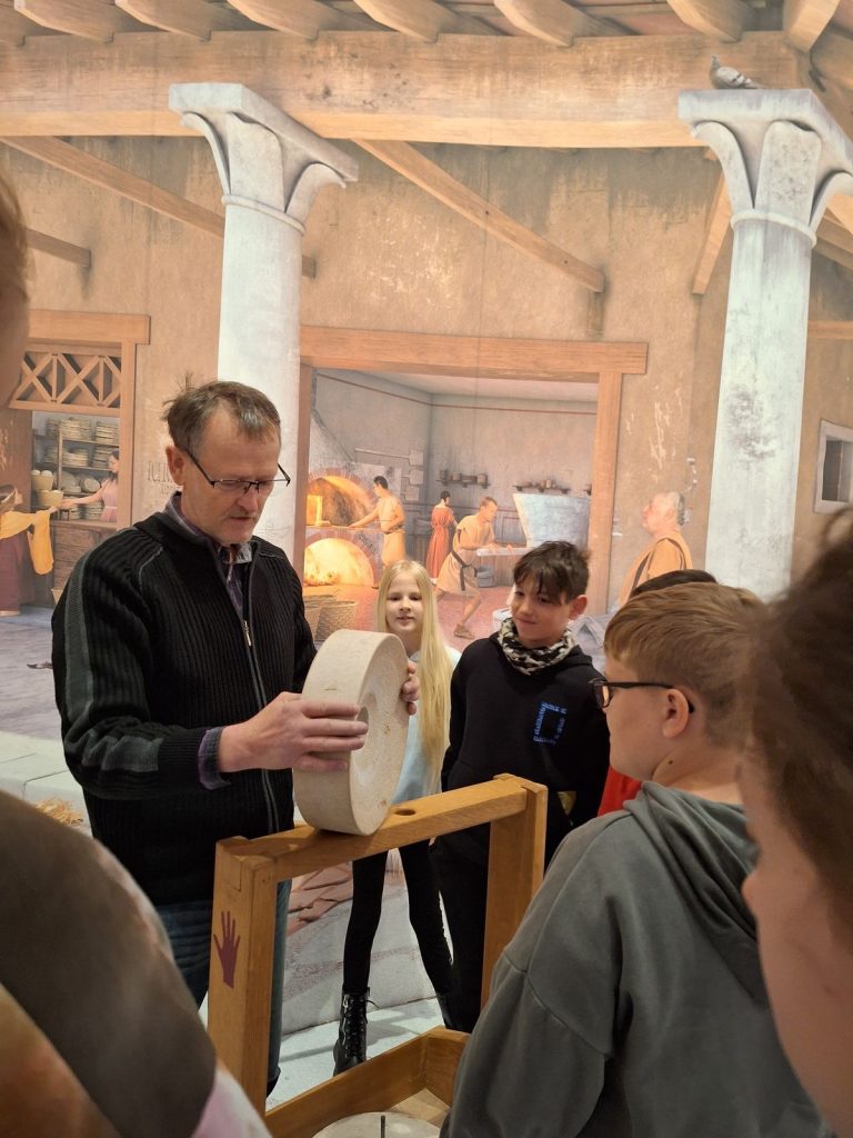 Az 5. osztályosok a Savaria Múzeumban jártak, ókori római témájú foglalkozáson vettek részt. 3 csoportban hallgattak, próbáltak ki érdekes dolgokat. A római lakomáról, a mindennapi életről, a sírokról tanultak játékos formában.