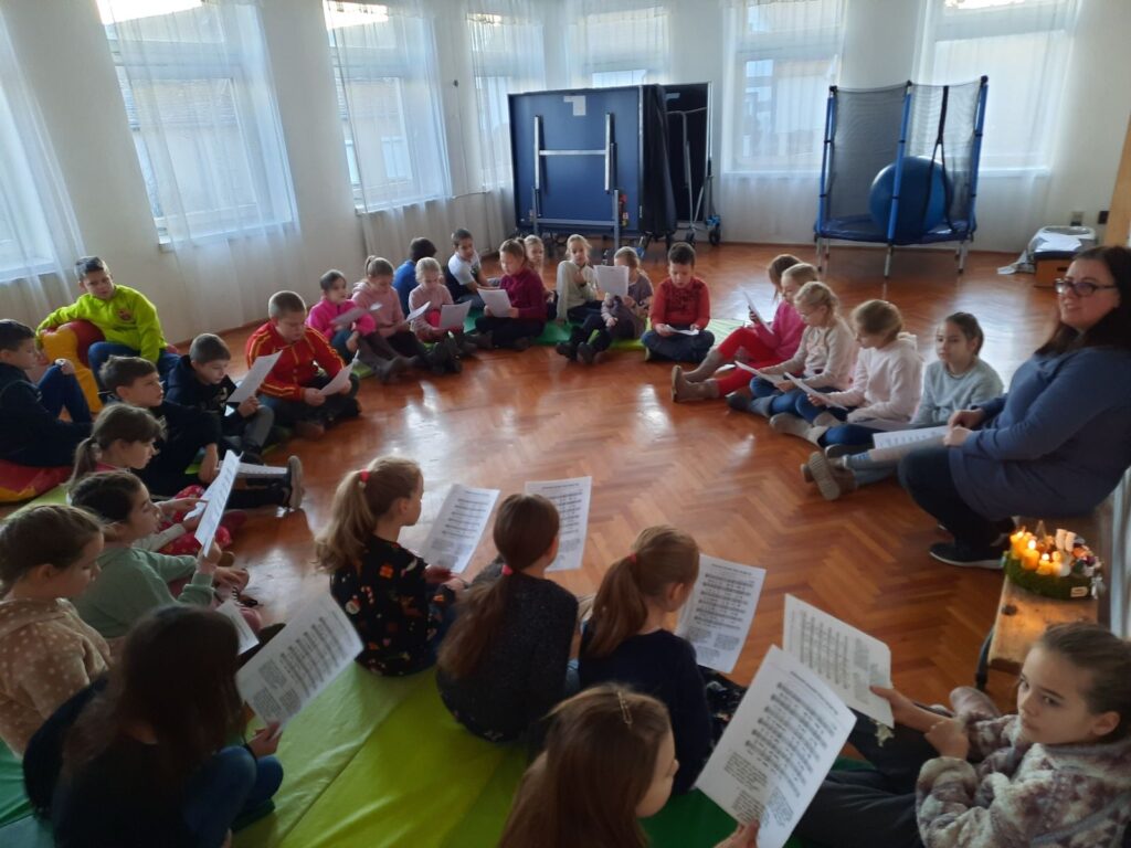 Ilyenkor minden daloskedvű kis- és nagydiák csatlakozhat az órák előtt Jutka néni, Andi néni vagy Erika néni vezetésével éneklő kórushoz, akik igyekeznek meghitt hangulatot varázsolni a szívekbe és családias, bensőséges hangulatot teremteni az iskolában.
