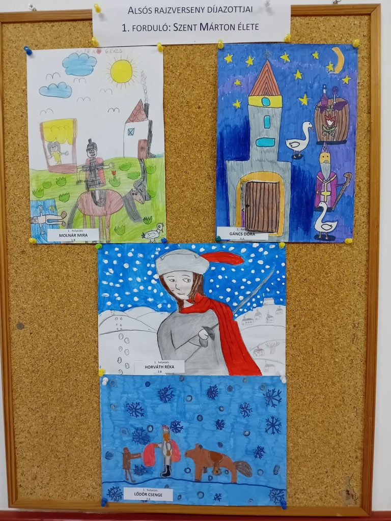 Iskolánk alsós rajzversenyének 1. fordulójának témája Szent Márton élete volt. Minden évfolyamon lett egy nyertes tanuló, valamint a két tagú zsűri 2 különdíjast is választott.