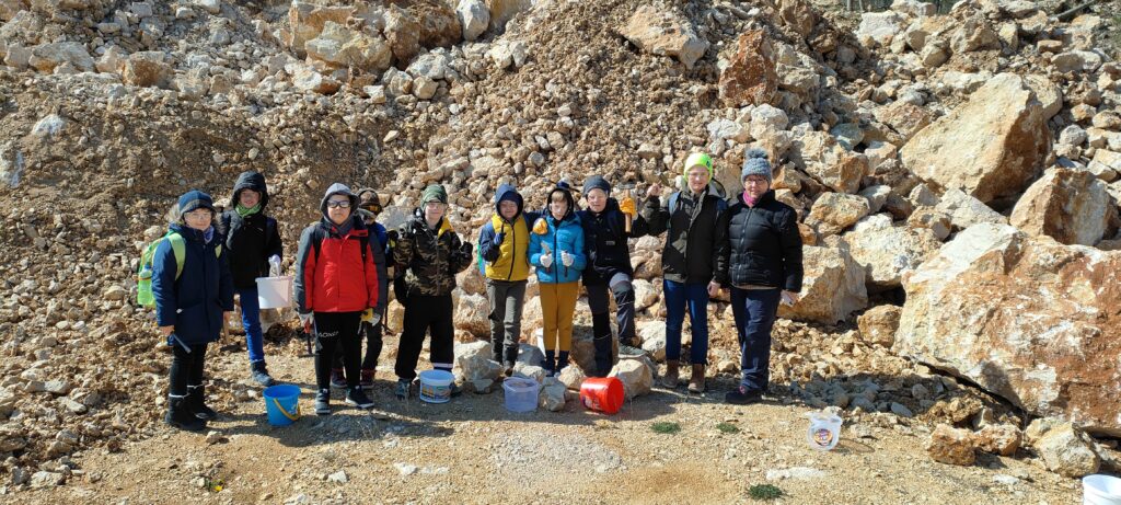 Sümegre mentünk.  Ragyogó napsütésben, száraz talajon, kellemes melegben,  az előírt, megfelelő védőfelszerelésben ” dolgoztunk”.  A gyerekek gyorsan ráéreztek a dolog ízére 🙂    Nagyon, nagyon élvezték. Mindenki megrakta a vödrét, táskáját, zsebeit  a kincsekkel  🙂
