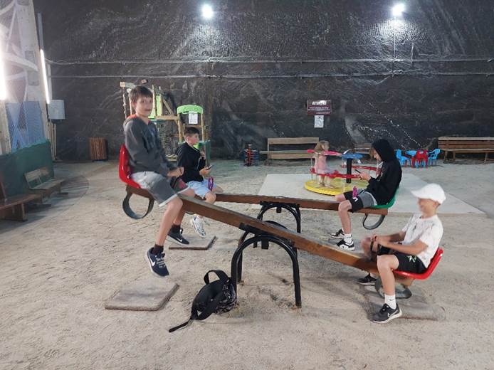 Késő délután érkeztünk a Tordai sóbányához, amelyben liliputi törpéknek érezhettük magunkat. A mára már felhagyott bányászat emlékeit bemutató kiállítás, a hatalmas méretek ámulatba ejtettek bennünket.
