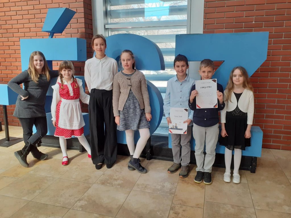 2025. március 6-án iskolánk 7 tanulója (Gáncs Attila 1. a, Kiricsi Lotti 2. a, Krizsán Hanga 2. b, Vajda Dávid 3. a, Csatári Lívia 4. a, Györe -Szabó Jázmin 5. a, Berkes Borbála 5. b) vett részt a Német Nemzetiségi Vers- és Prózamondó Verseny Vas és Zala vármegyei fordulóján Szombathelyen. Mindenki szépen felkészült, aminek az eredménye, hogy 3 tanuló (Krizsán Hanga, Vajda Dávid, Csatári Lívia) továbbjutott a regionális döntőbe. Gratulálunk!