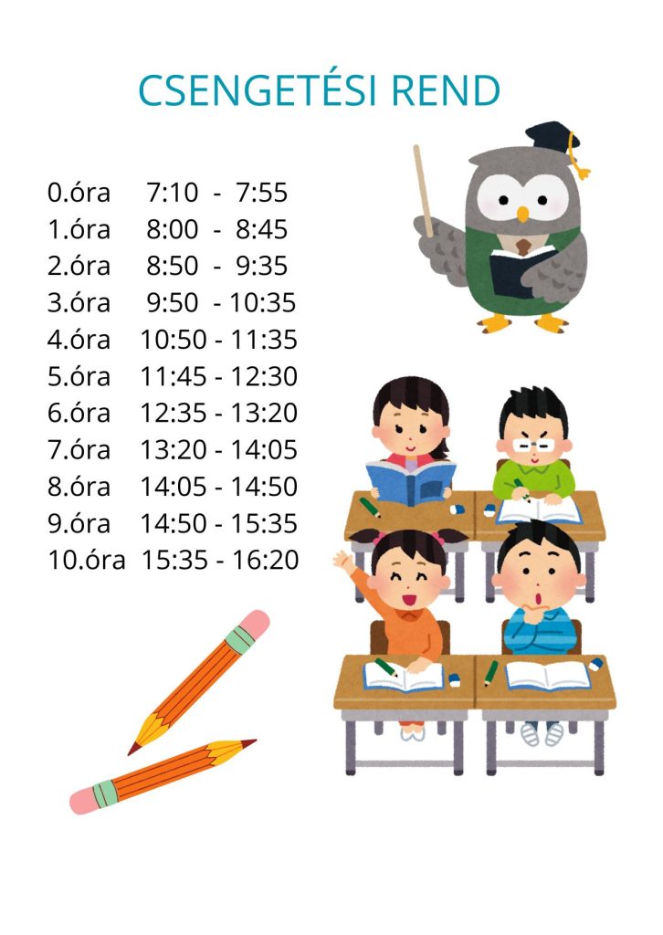 Nyitvatartás, csengetési rend
