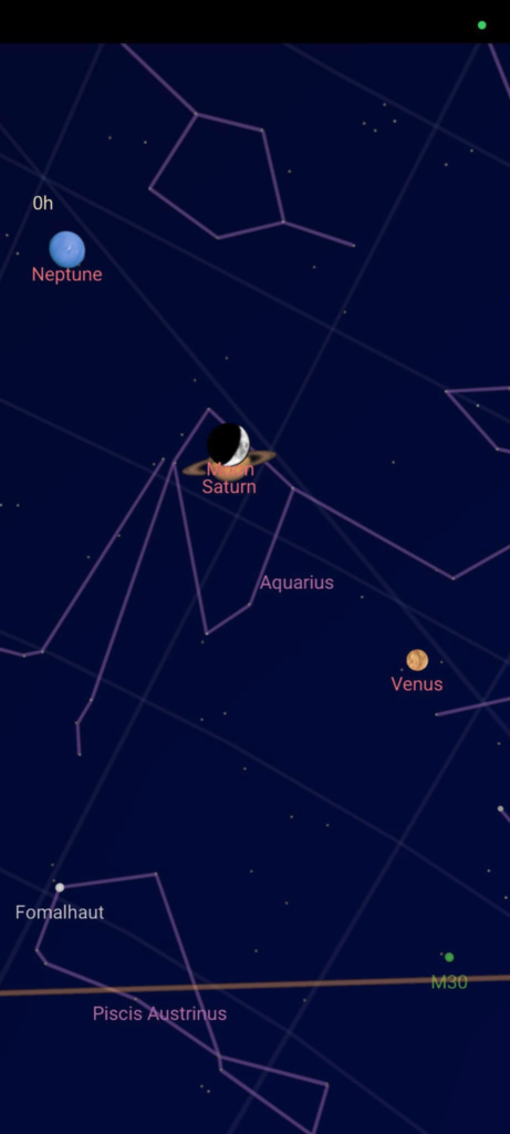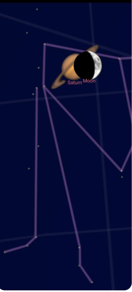 December 4- én este a Szaturnusz áthaladt a Hold mögött. Mivel erősen fátyolfelhős volt, a SkyMap segítségével készültek a képek. Ilyen áthaladás 11 év múlva látható újra.