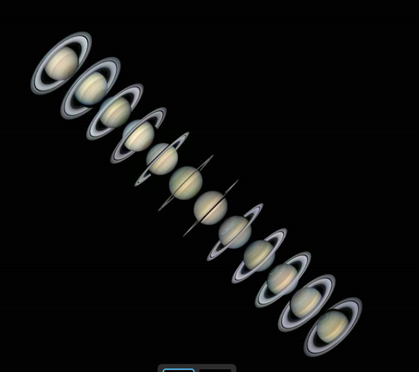 A Szaturnusz gyűrűinek 12 éves billegése 2022.10.26-án éjjel éri el maximumát.