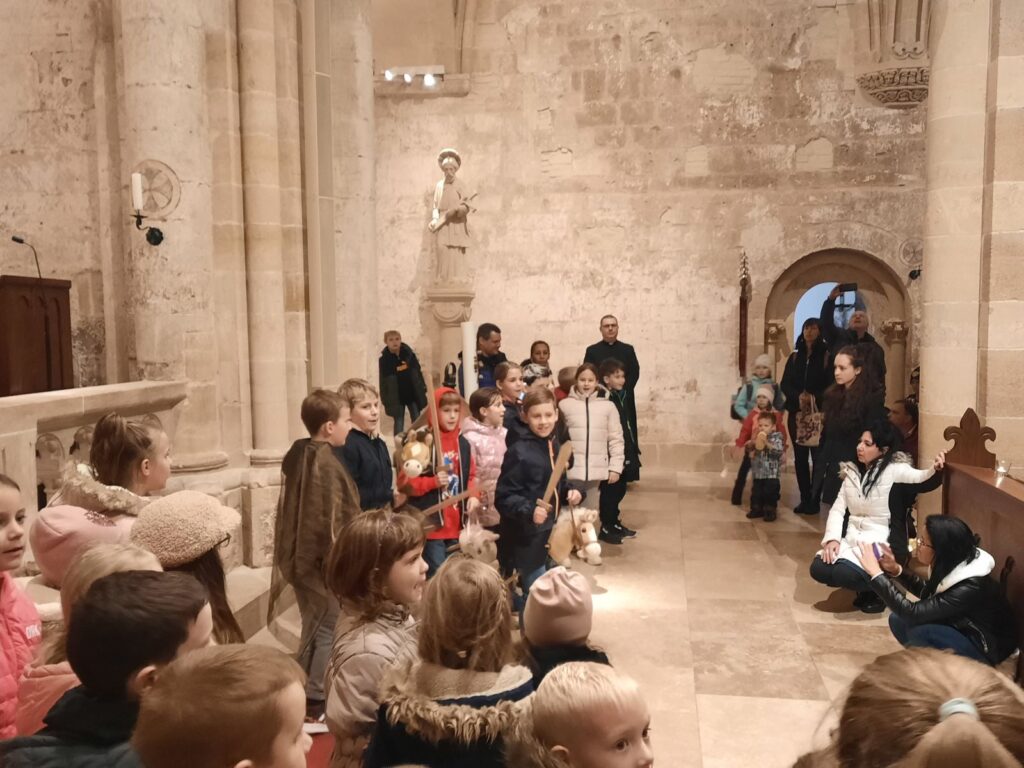 A nemzetiségi német nyelvet tanuló alsós diákok különböző állomásokon vettek részt, ahol játékos, ügyességi, interaktív feladatokon keresztül ismerkedtek meg Szent Márton életével, nevéhez fűződő legendákkal, valamint libaformájú sütit és lámpást is készíthettek. A program zárásaként az ovisokkal és a szülőkkel együtt a templomba vonultunk a lámpásainkkal, ahol közös éneklés után a harmadikos tanulók egy jelenetet adtak elő Szent Márton és a koldus történetéről.