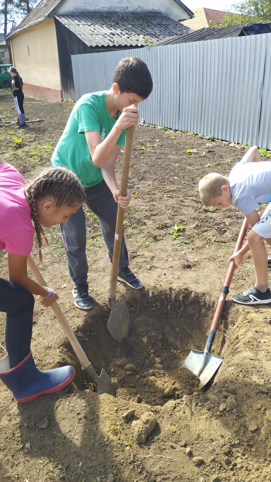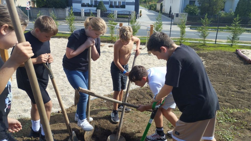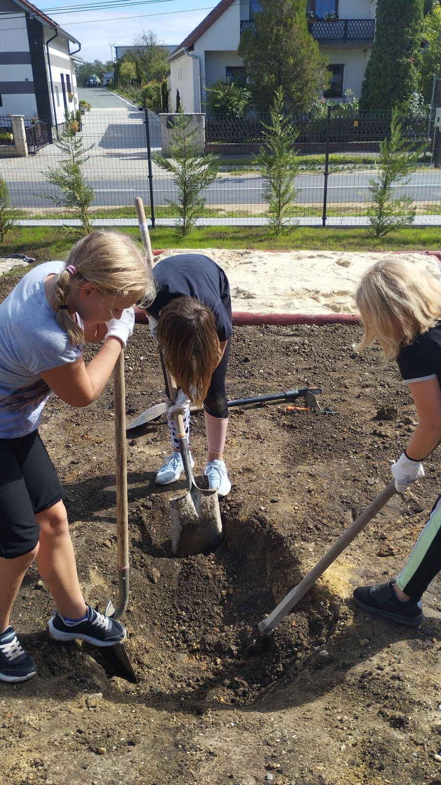 Dolgozik az ásó, a kapa. Készülnek a gödrök, amibe vadgesztenyét, törökmogyorót, mamutfenyőt és még számos díszfát ültetnek az 5. a osztályosok. Szépül a játszótér.