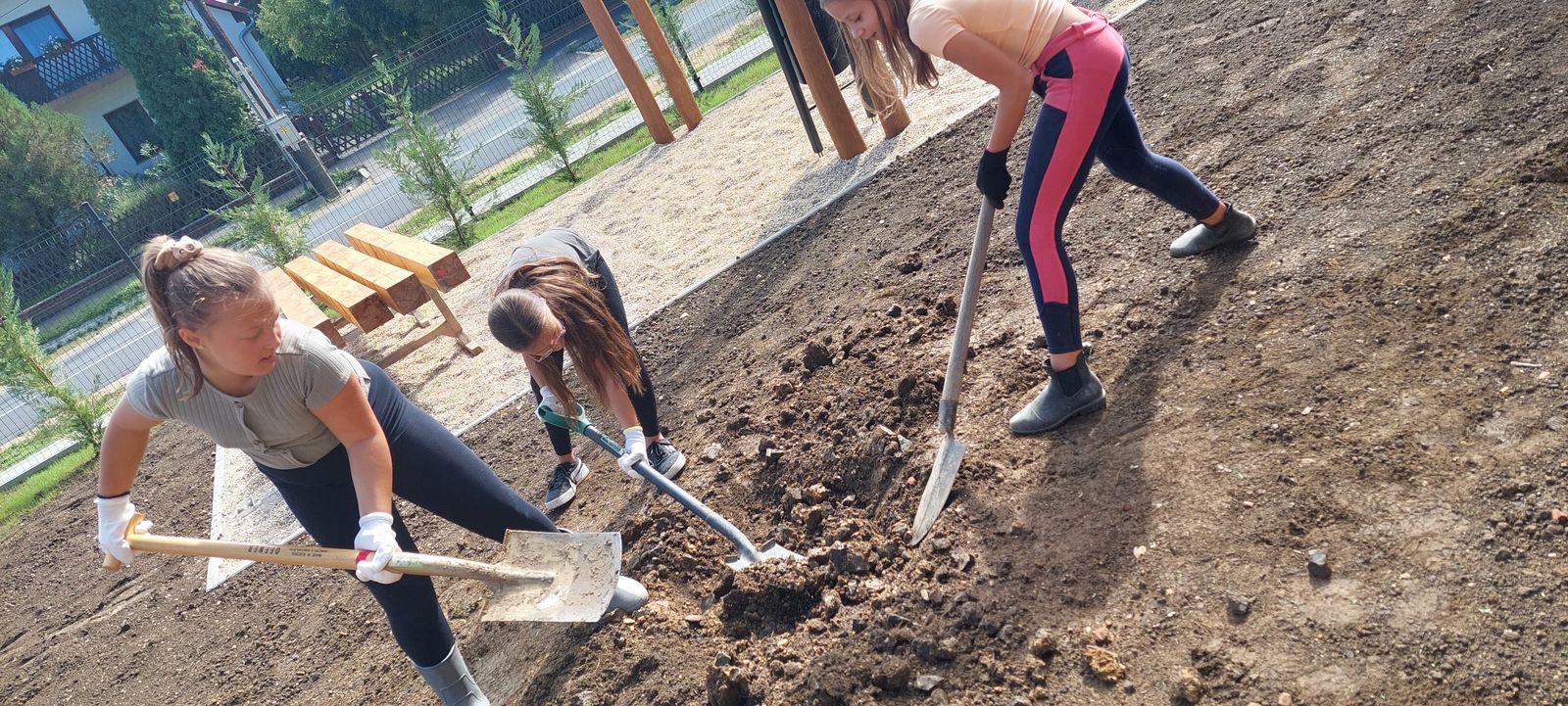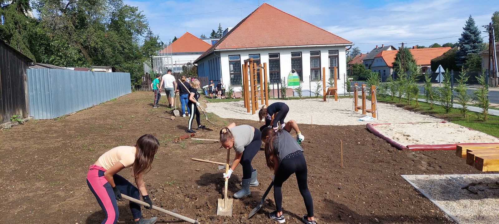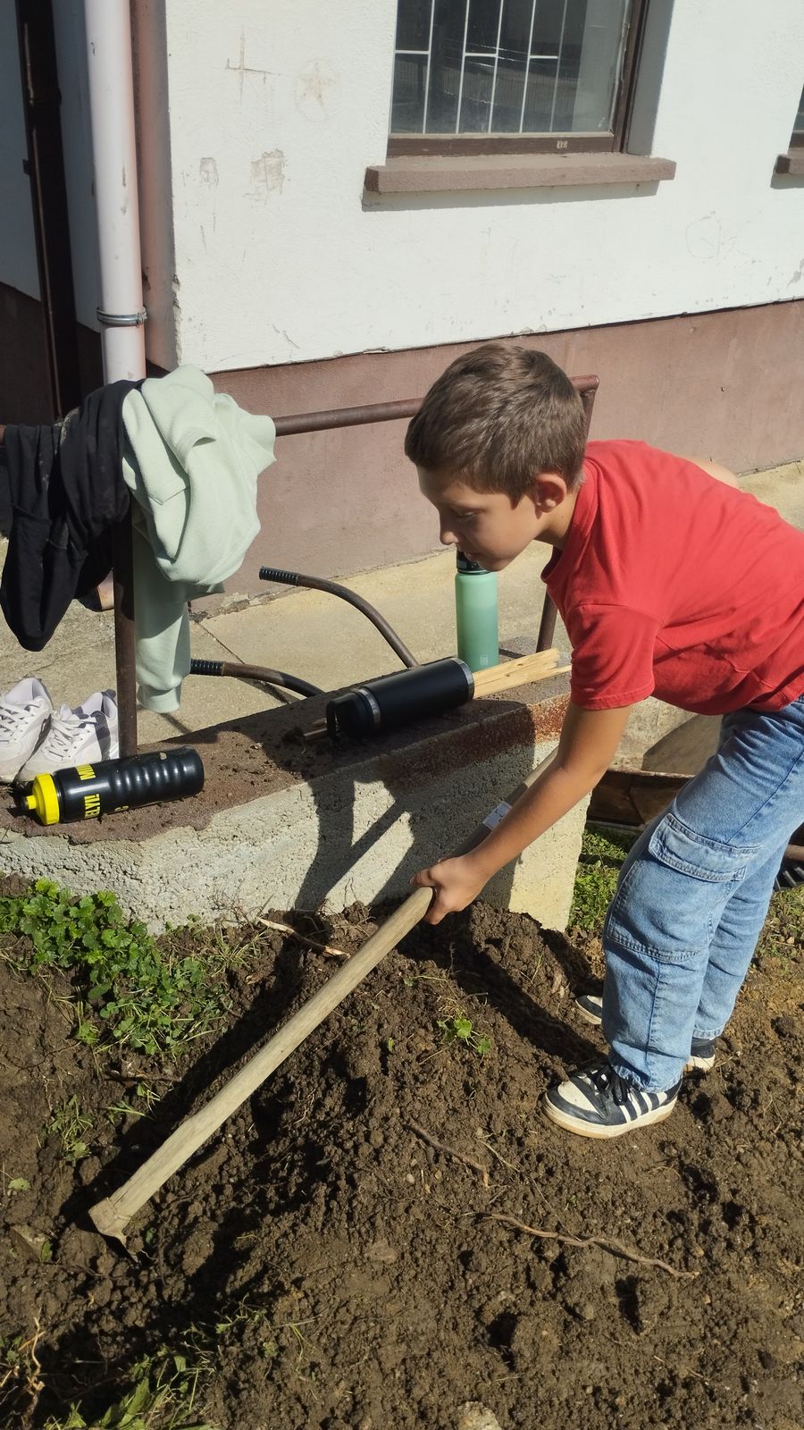 Dolgozik az ásó, a kapa. Készülnek a gödrök, amibe vadgesztenyét, törökmogyorót, mamutfenyőt és még számos díszfát ültetnek az 5. a osztályosok. Szépül a játszótér.